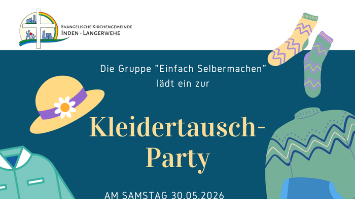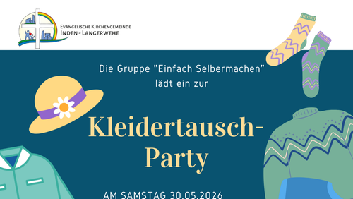 Am 24.05. hast du die Gelegenheit bei unserer Kleidertauschparty im Gemeindezentrum alte Lieblingsteile mitzubringen und neue mitzunehmen.