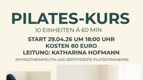 Ab dem 29.04.2026 bieten wir wieder einen Pilates-Kurs in Zusammenarbeit mit Katharina Hofmann (Pilates Coach) an. Er wird weiterhin mittwochs von 18:00-19:00 Uhr stattfinden.