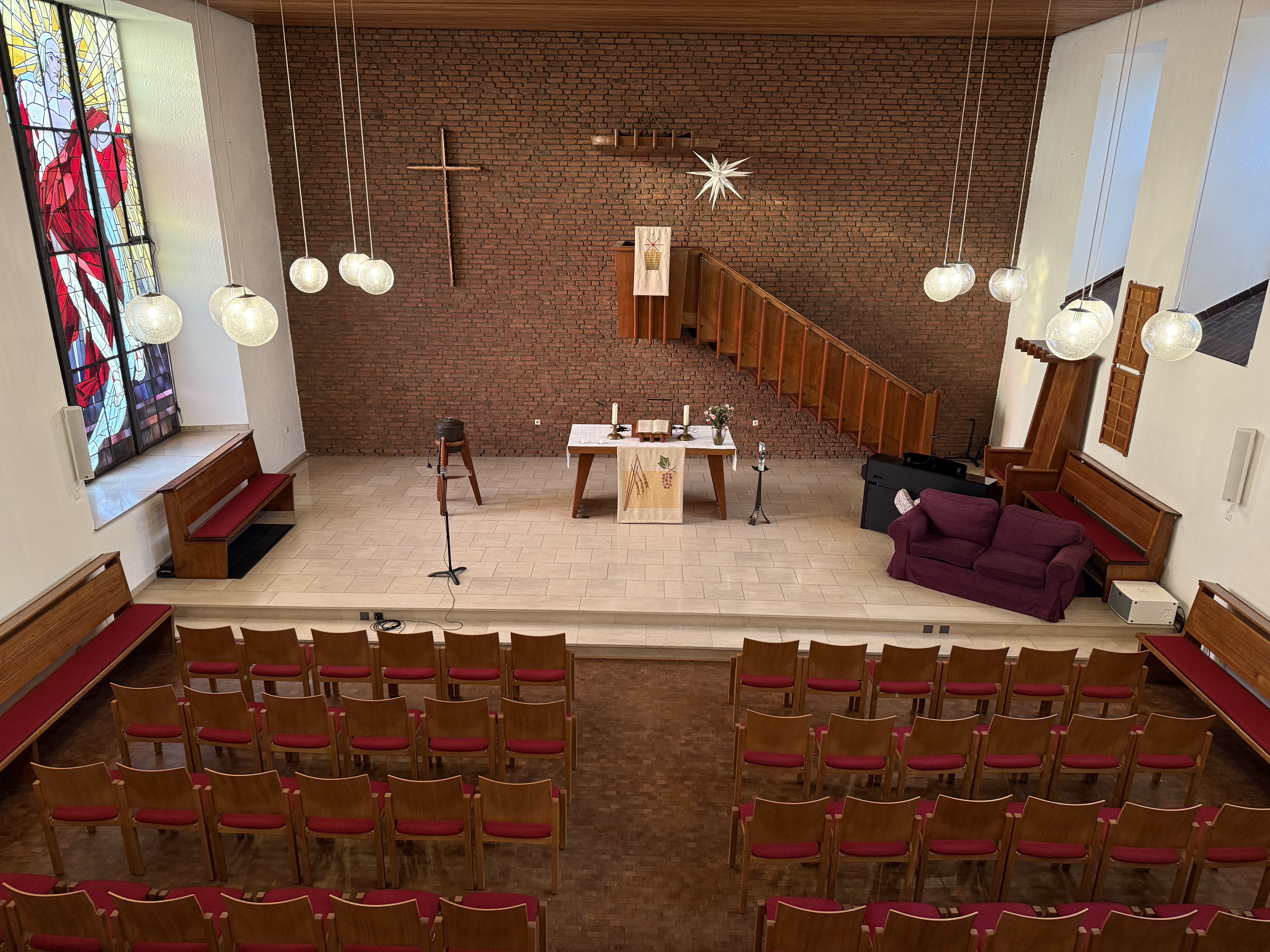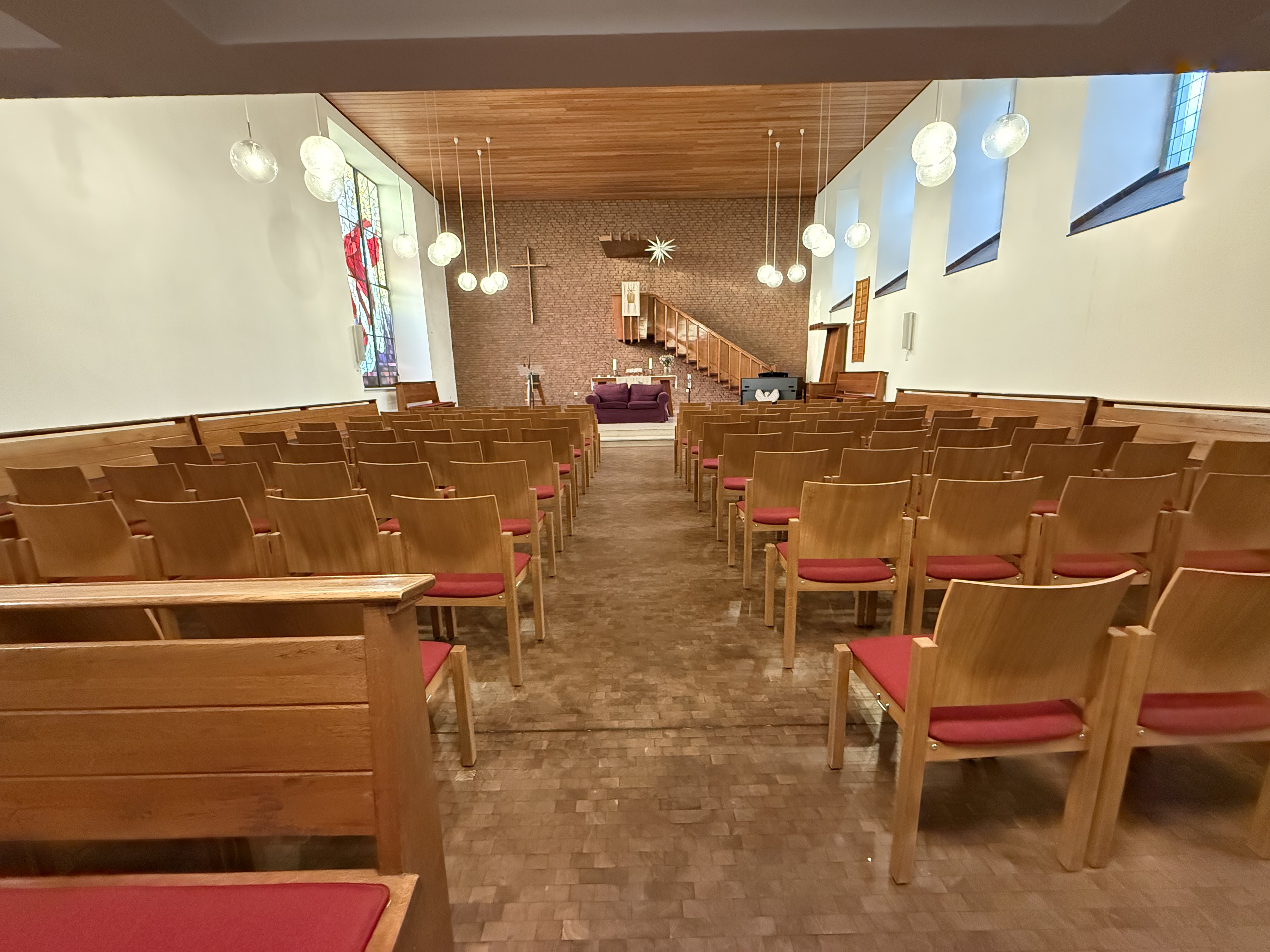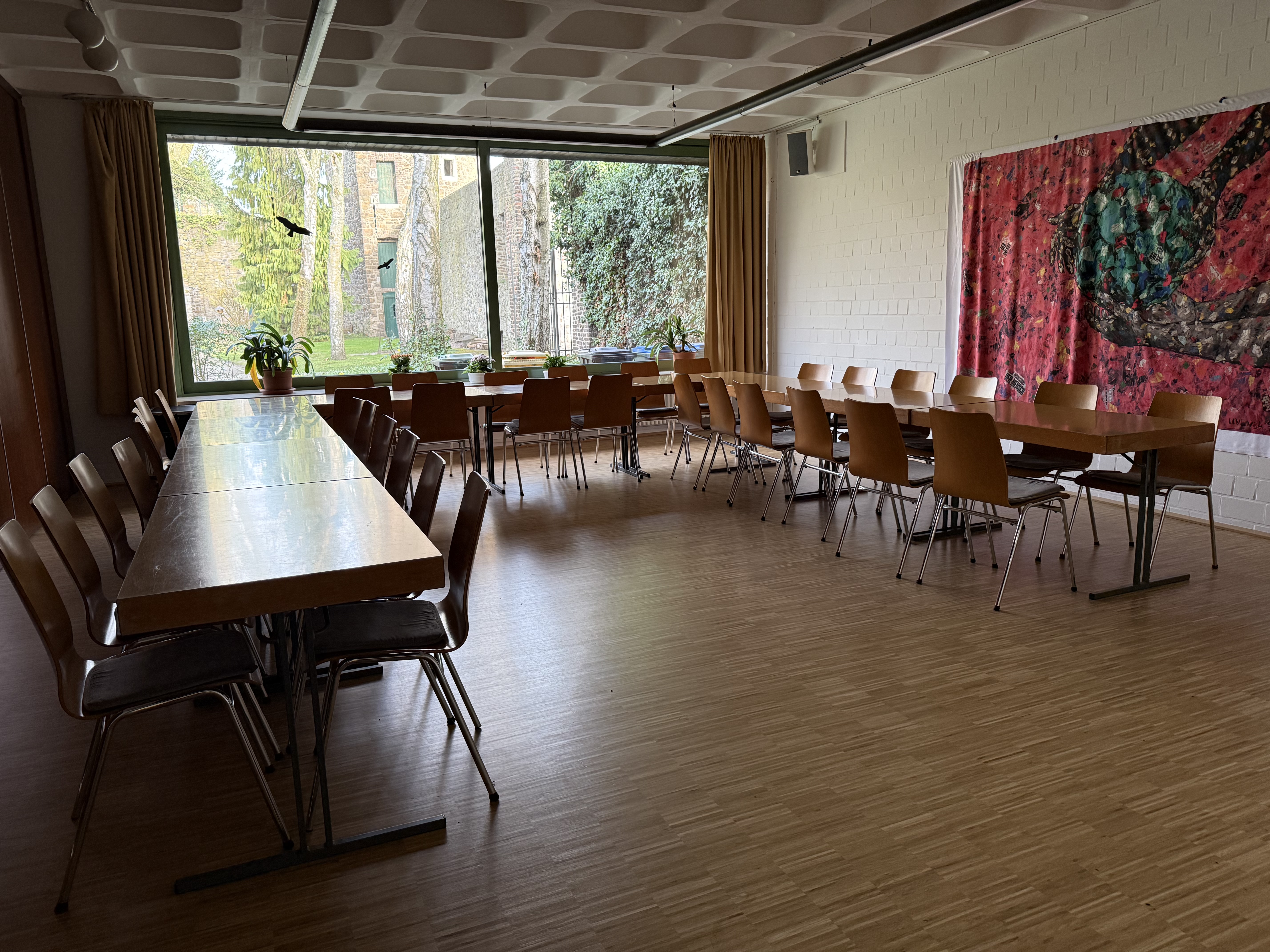 Neben der Kirche steht ein Großes Gemeindezentrum, mit vielen Vermietungsmöglichkeiten. Für mietungen, wenden Sie sich bitte an unser Gemeindebüro.